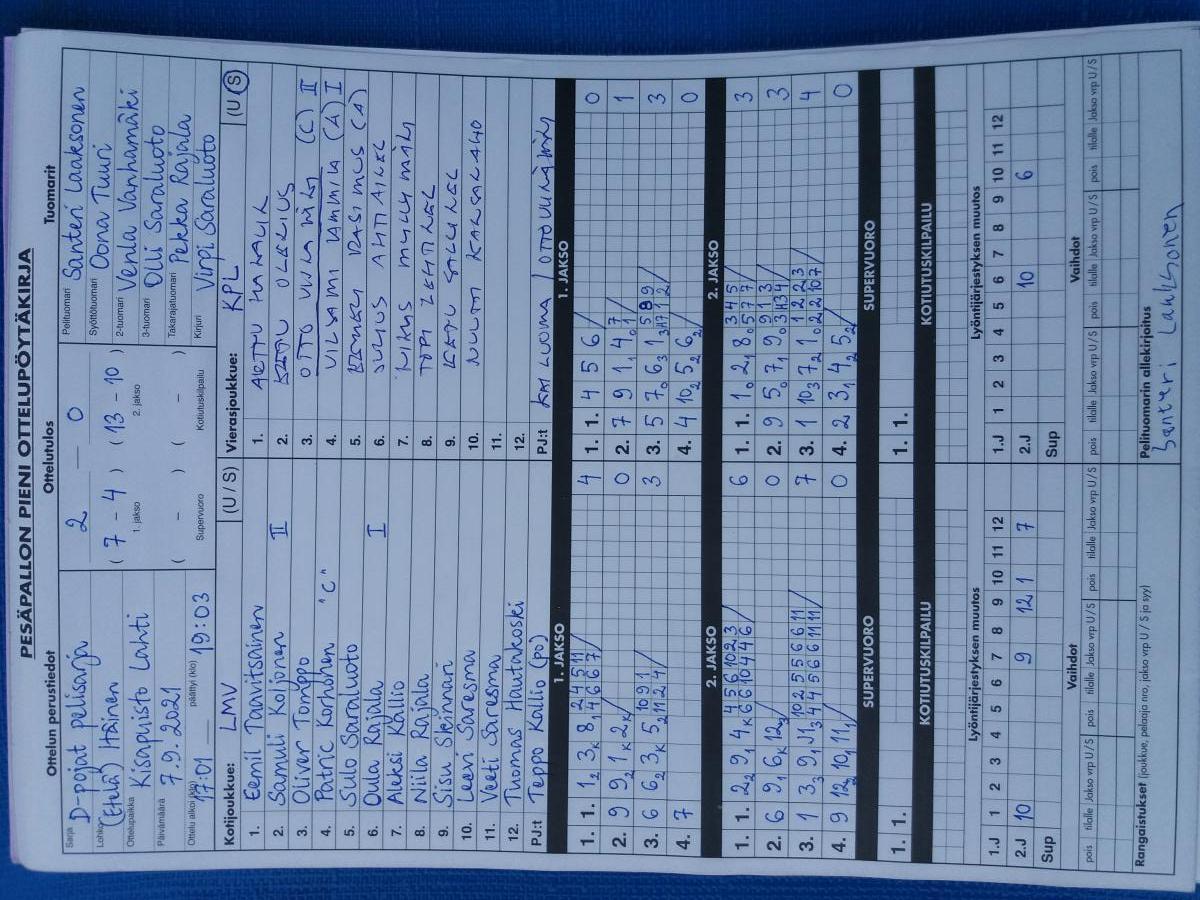| 17.5.2021 18:00 | KPL | SuPo D-pojat | 2-0 (13-8, 12-4) | näytä | |