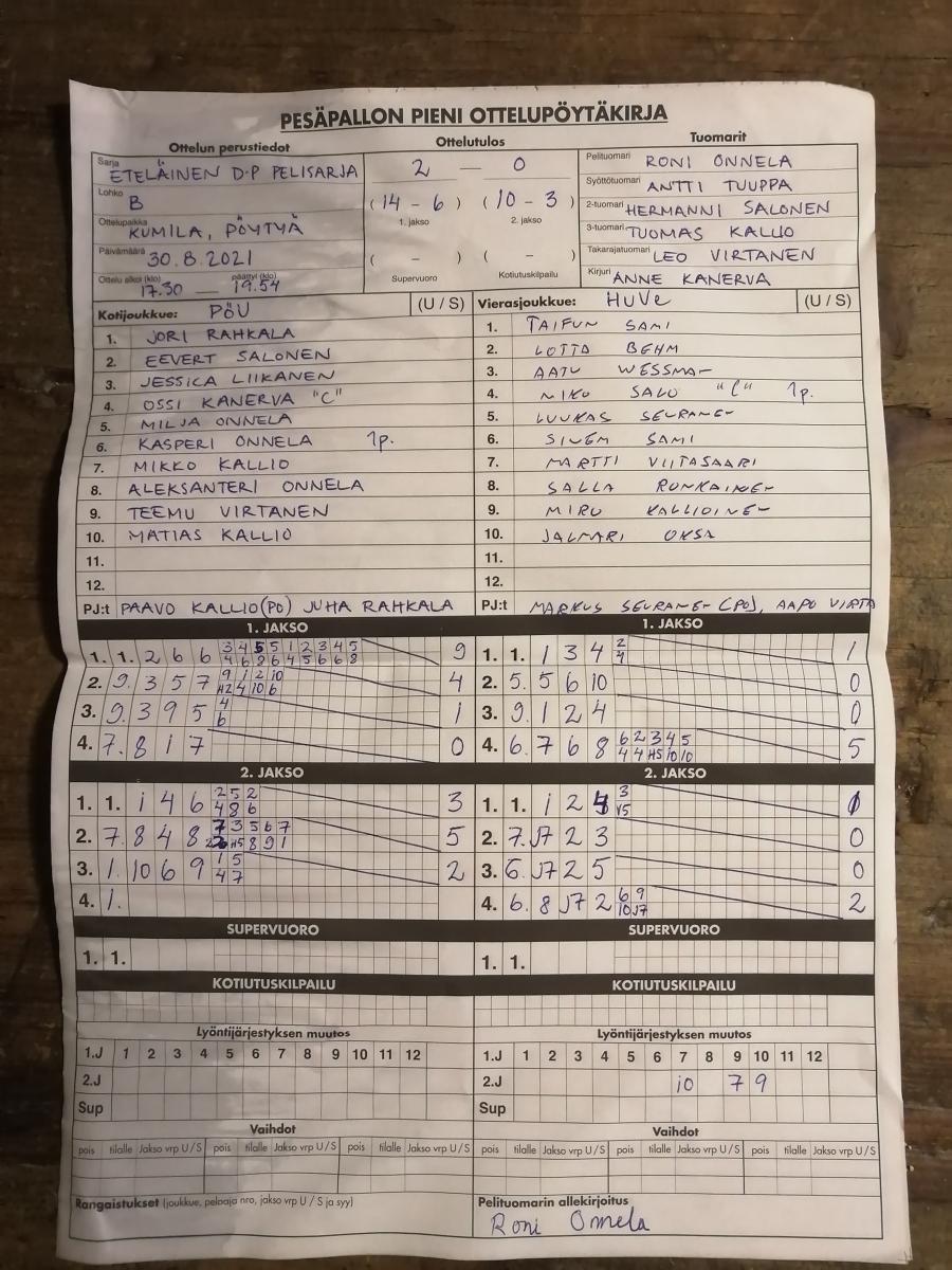 | 30.8.2021 18:00 | PöU Dp | HuVe | 2-0 (14-6, 10-3) | näytä | |