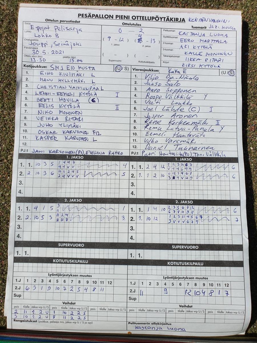| 30.5.2021 13:30 | SMJ E10 musta | Kaka | 0-2 (9-12, 4-13) | näytä | |