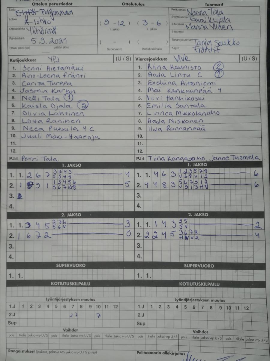 | 5.9.2021 11:30 | YPJ E-tytöt | ViVe | 0-2 (9-12, 3-6) | näytä |