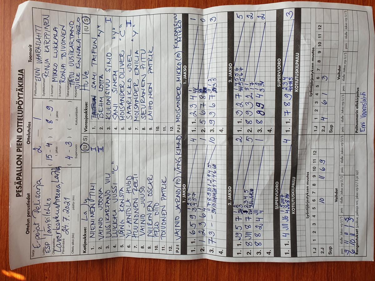 | 24.7.2021 00:00 | LaJy | HuVe E-pojat | 2-1 (15-4, 8-9, 4-3) | näytä | |