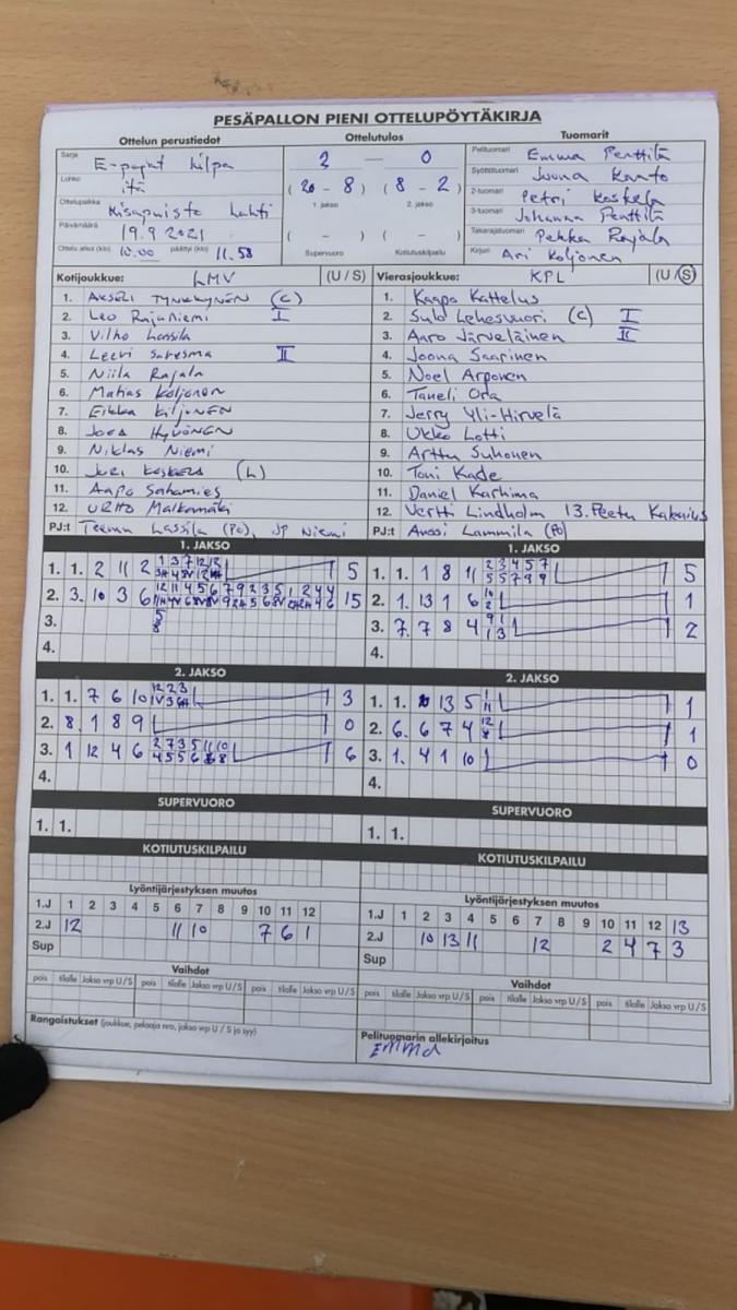 | 4.7.2021 00:00 | LMV Sininen | KPL E pojat | 2-0 (13-5, 16-8) | näytä | |