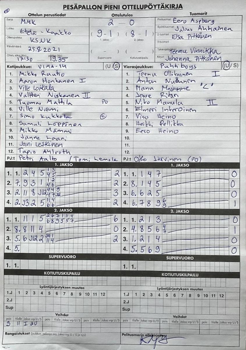| 2.7.2021 | Vima-2014 | PuhtiBoys | 2-0 (9-1, 8-1) | näytä | |