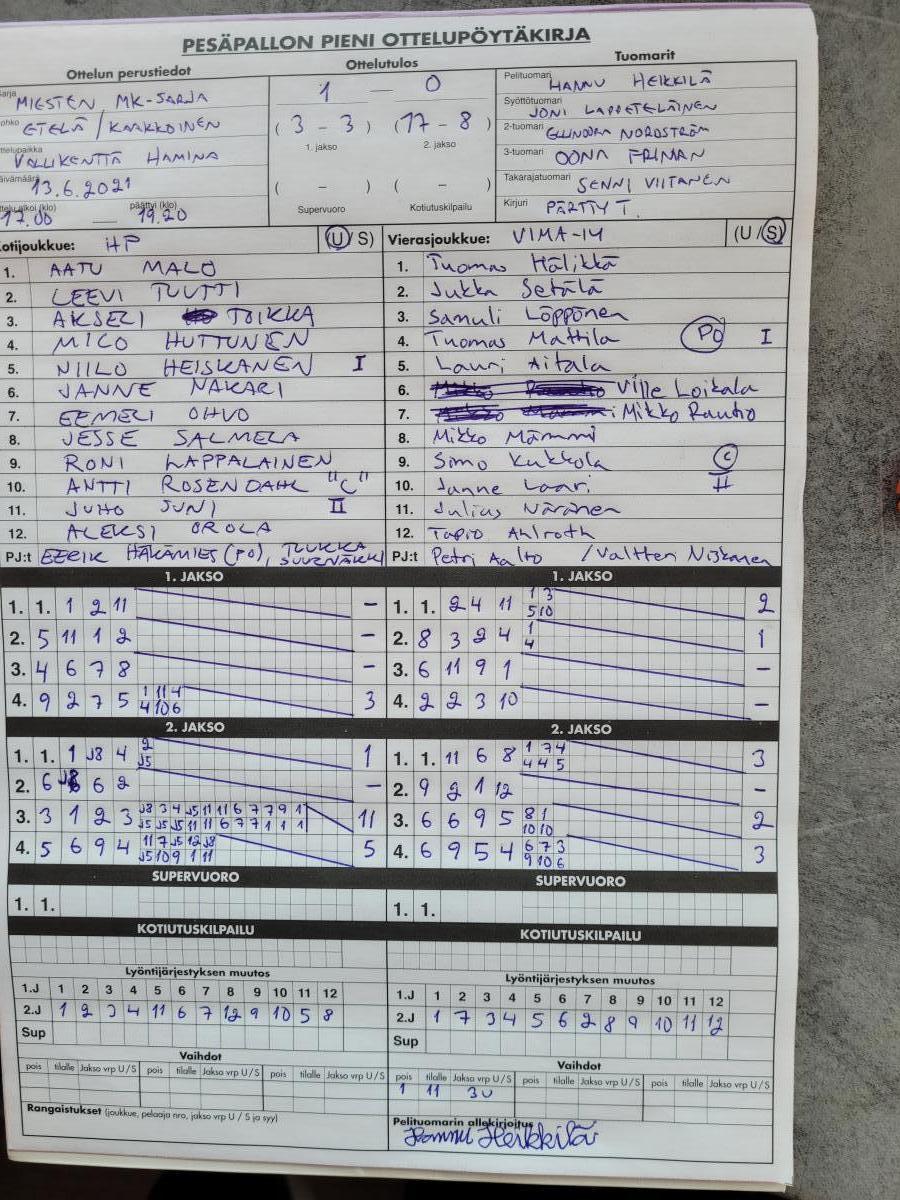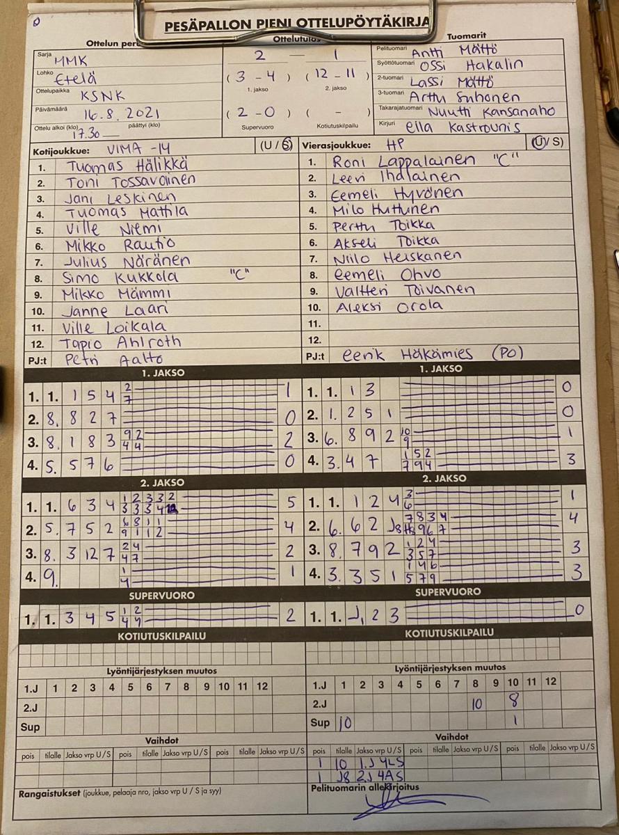 | 13.6.2021 | HP | Vima-2014 | 1-0 (3-3, 17-8) | näytä | |