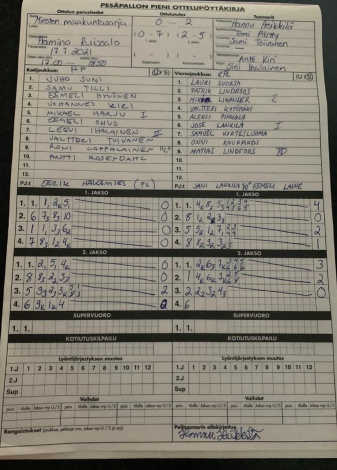| 11.7.2021 | KPL 3 | HP | 2-0 (16-6, 5-3) | näytä | |