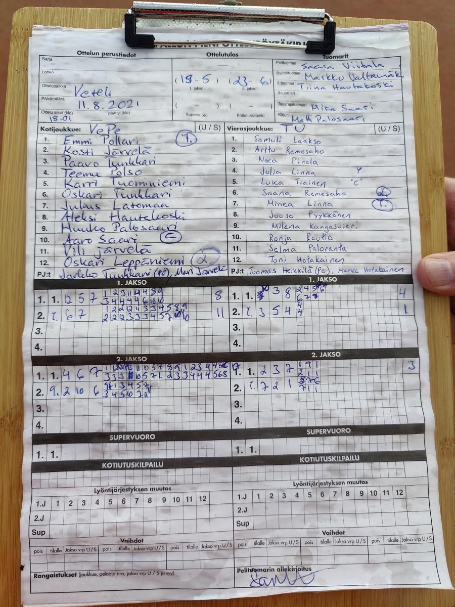 | 8.7.2021 | TohU | VePe | 0-1 (12-12, 7-19) | näytä | |
