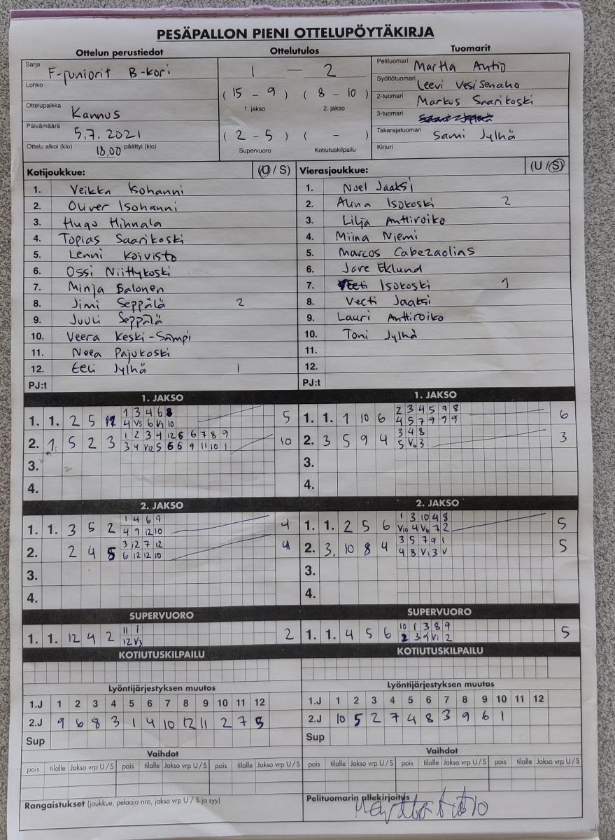 | 3.7.2021 | KoKi | YK- Kupperi | 0-1 (12-21, 0-0) | näytä | |