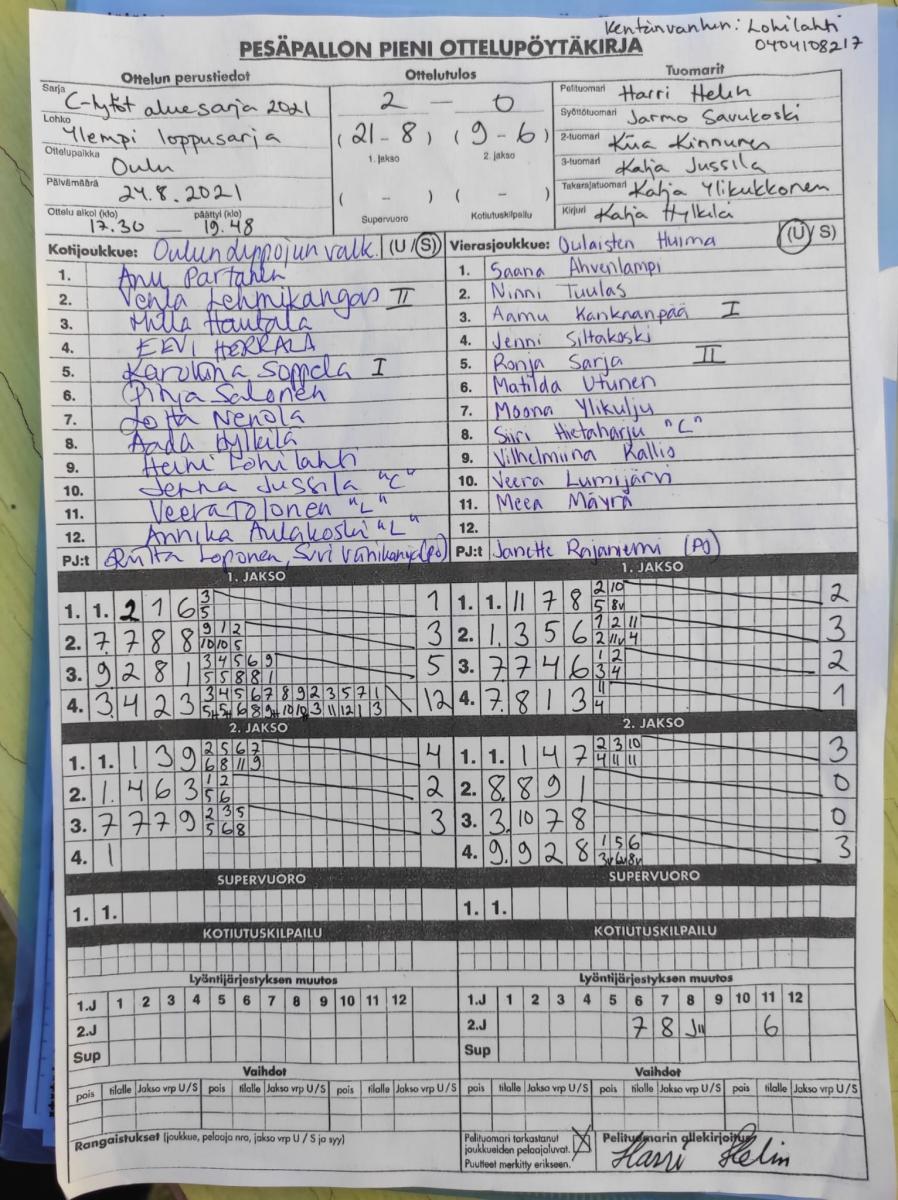 | 24.8.2021 | Lippo valkoinen | OuHu | 2-0 (21-8, 9-6) | näytä | |