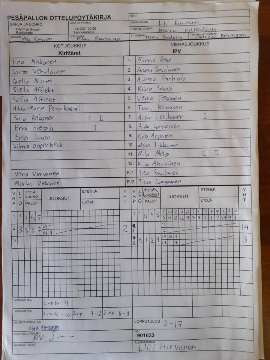 | 1.8.2021 00:09 | Lappeenranta | Kirittäret | IPV | 2-17 | näytä |