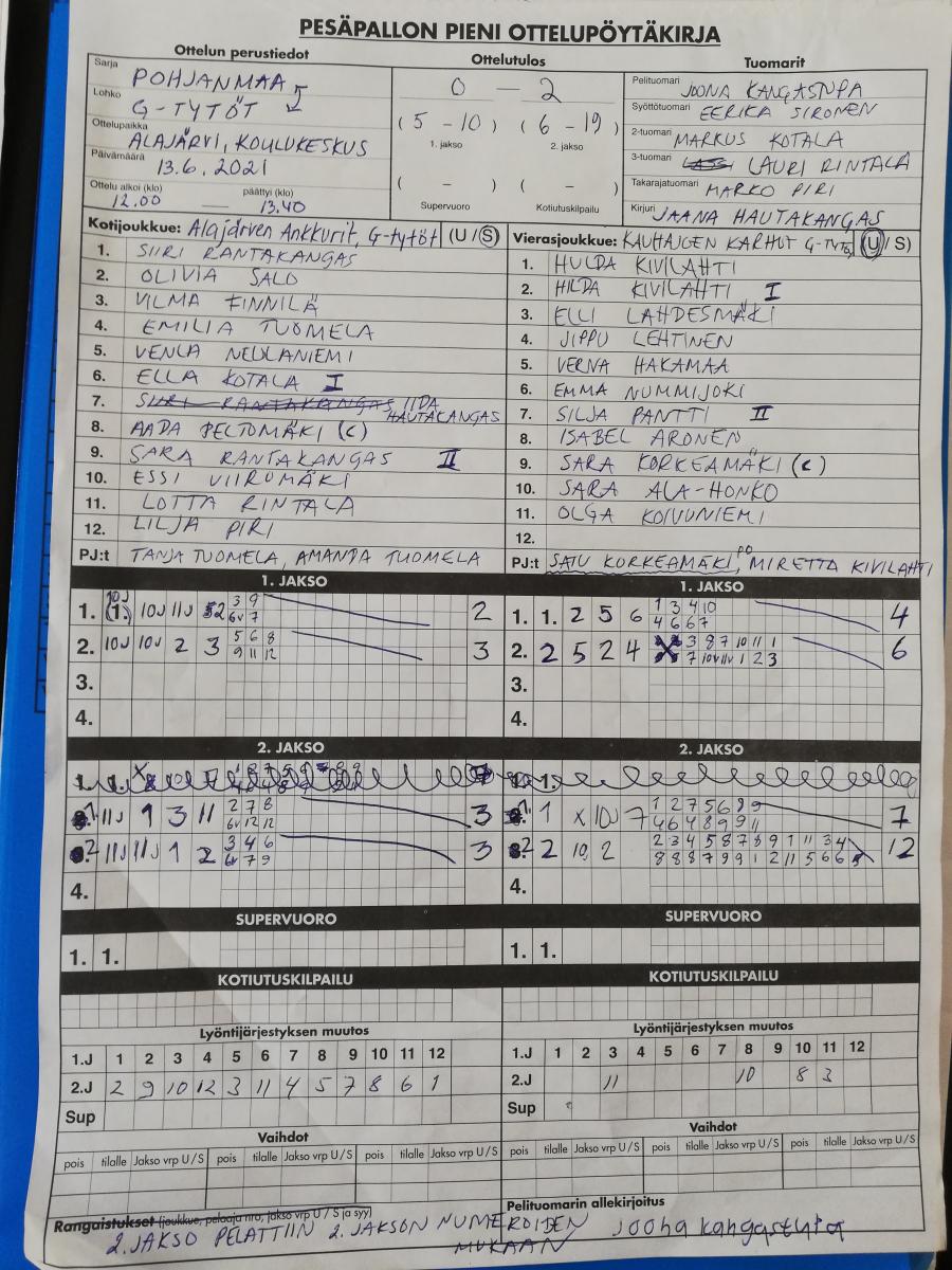 | 6.7.2021 18:00 | SMJ T14 | Kaka | 0-1 (6-12, 0-0) | näytä | |