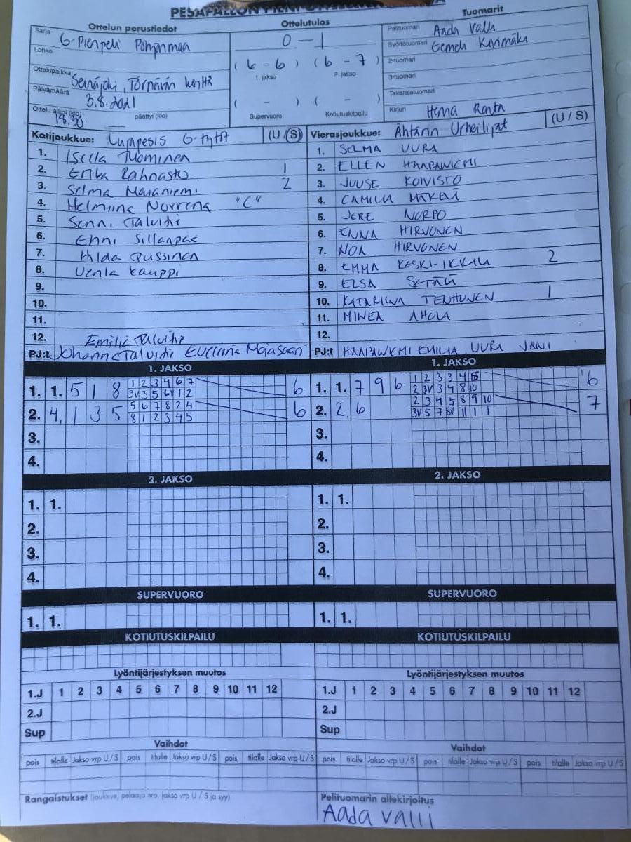 | 3.8.2021 17:30 | Jurvan liekki | Lujapesis G-tytöt | 15-7 | näytä | |