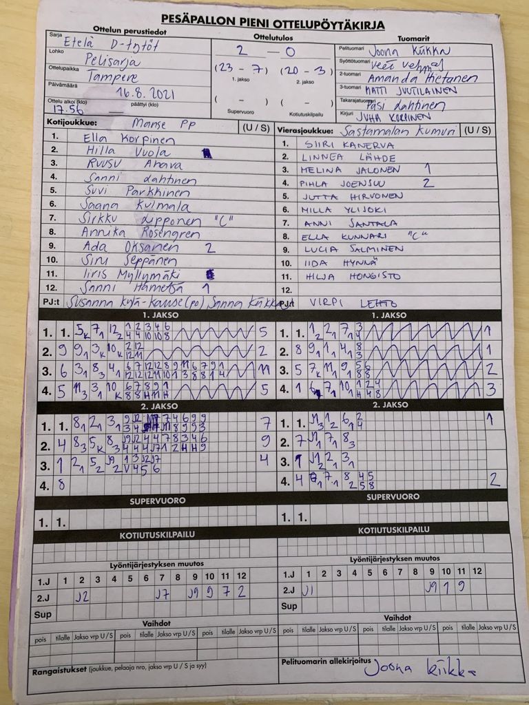 | 16.8.2021 00:00 | Manse PP | Sastamalan Kumuri | 2-0 (23-7, 20-3) | näytä | |