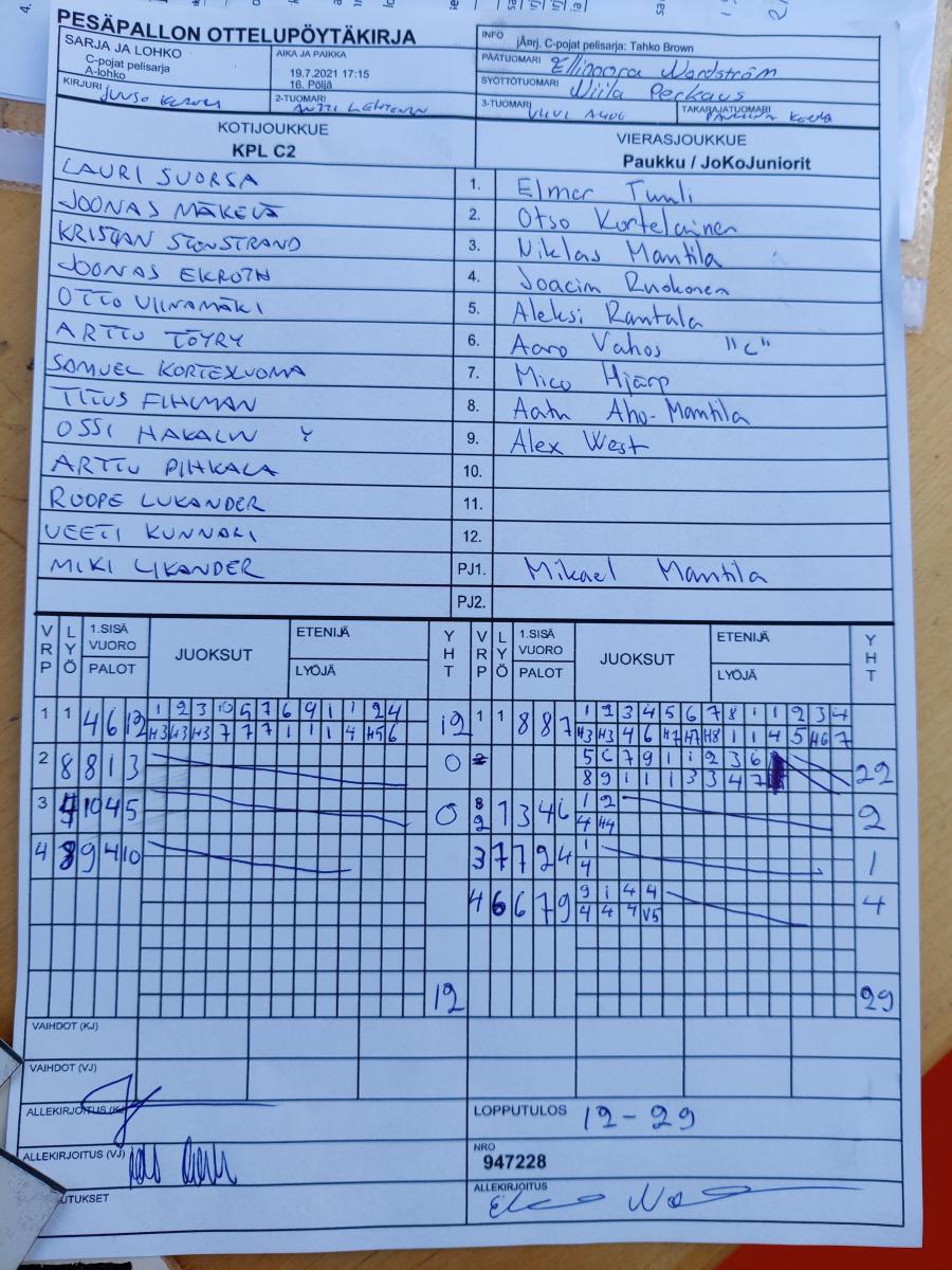 | C-pojat pelisarja - B-lohko | 19.7.2021 18:30 | 16. Pöljä | Tahko Brown | UPV | KPL C2 |