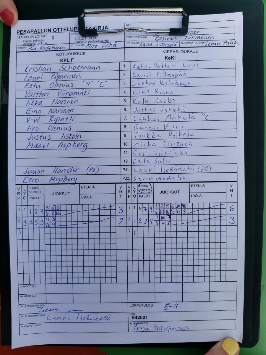 | 27.7.2021 13:00 | Alastaron pesäpallokenttä | KPL F | KeKi | 5-9 | näytä |