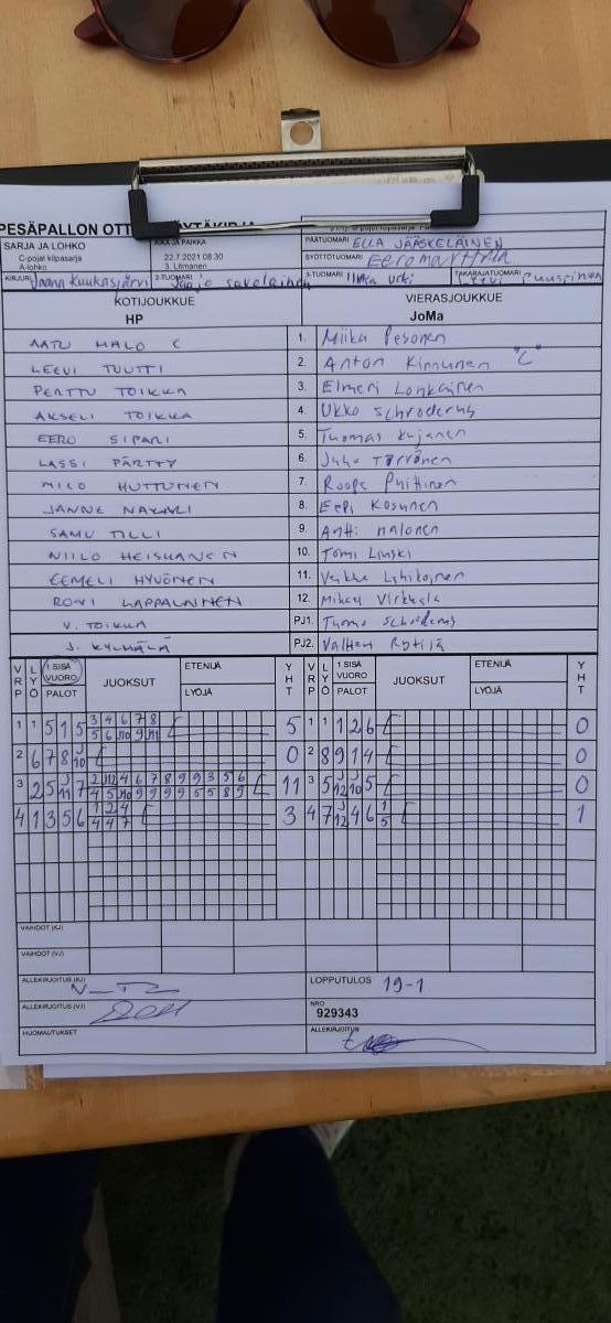 | 22.7.2021 08:30 | 3. Litmanen | HP | JoMa | 19-1 | näytä |