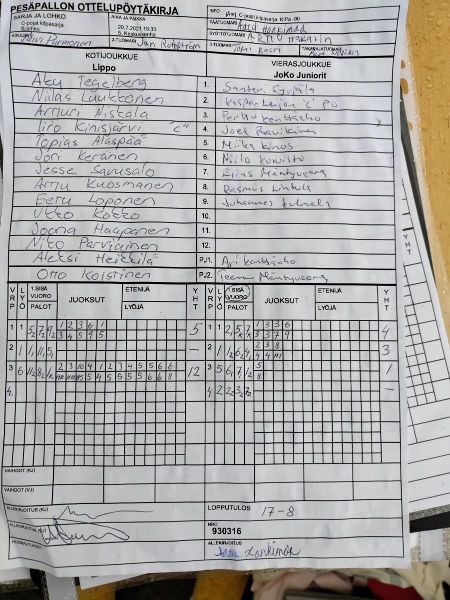 | C-pojat kilpasarja - A-lohko | 20.7.2021 09:45 | 4. Lippumäki | LMV | KeKi | JoKo Juniorit |