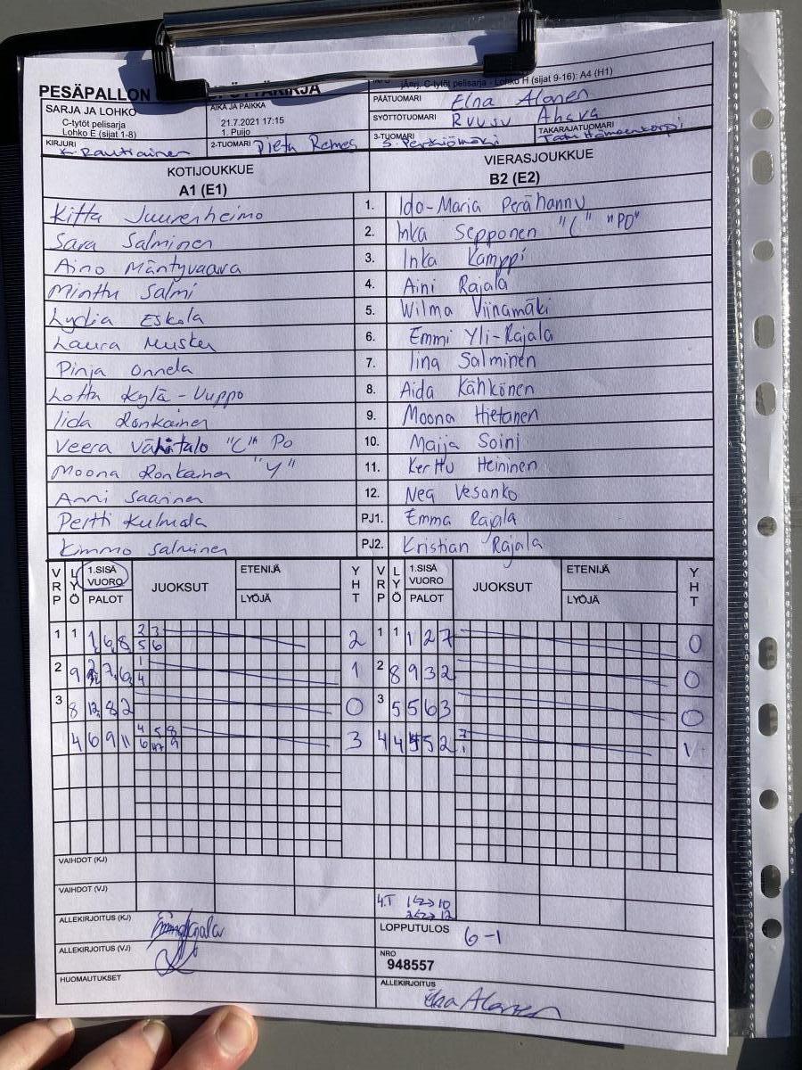 | Lohko H (sijat 9-16) | 21.7.2021 18:30 | 1. Puijo | SMJ Punainen | Ura | LP |