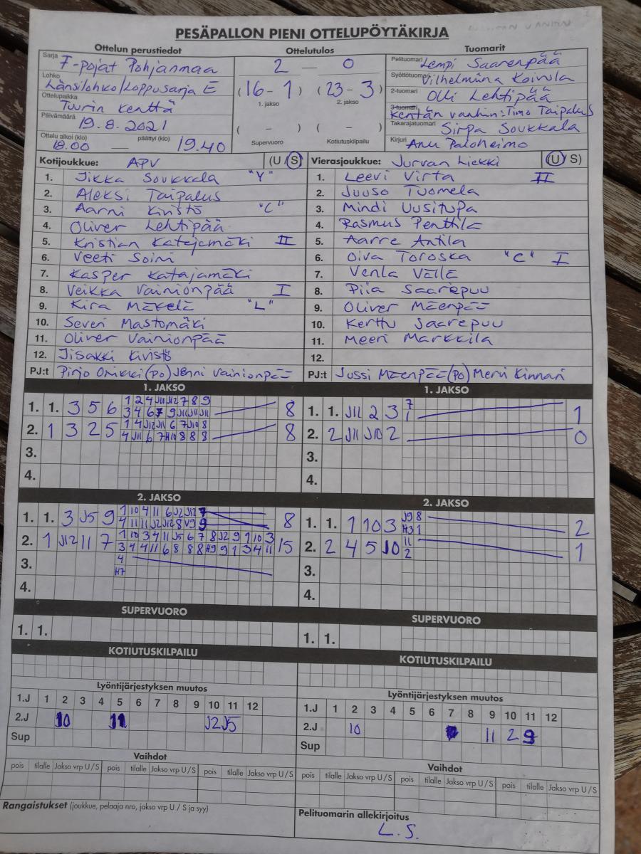 | 19.8.2021 18:00 | APV | Jurvan liekki | 2-0 (16-1, 23-3) | näytä | |
