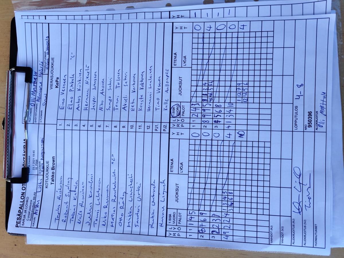 | B-lohko | 21.7.2021 17:15 | 10. Manttu | Paukku / JoKo | PattU | Tahko Brown |