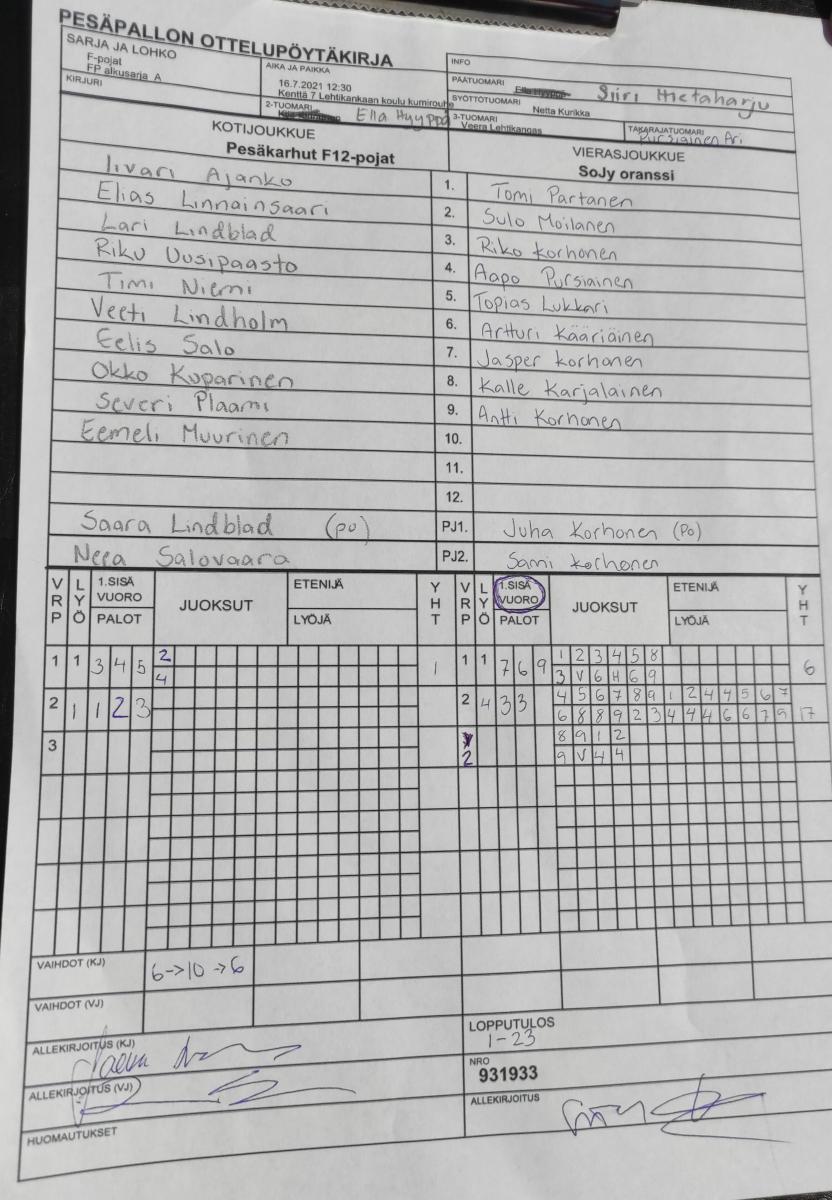 | 15.7.2021 08:30 | Kenttä 3 Pesäpallostadion hiekkanurmi | LaJy | SoJy oranssi | 11-14 | näytä |