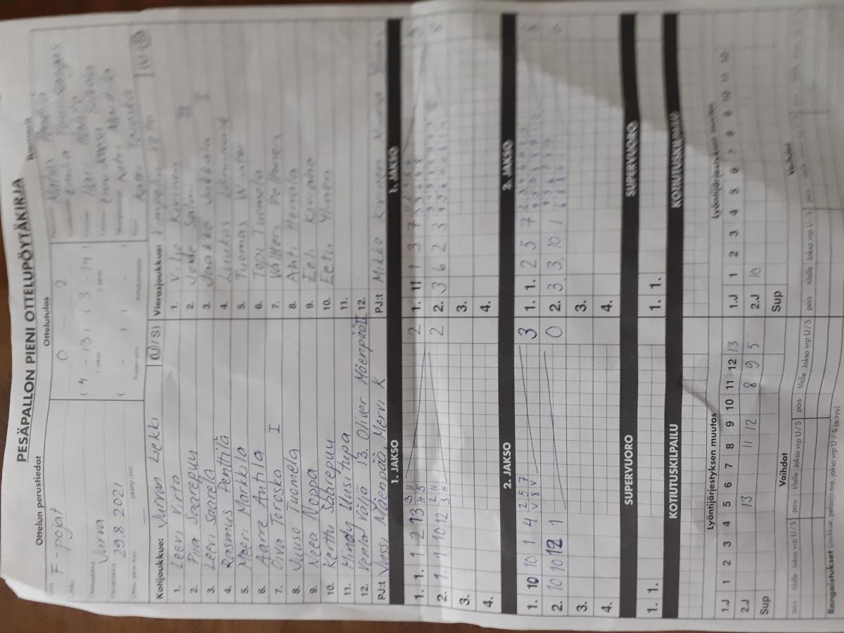 | 29.8.2021 15:00 | Jurvan liekki | ViVe sininen | 0-2 (4-13, 3-14) | näytä |