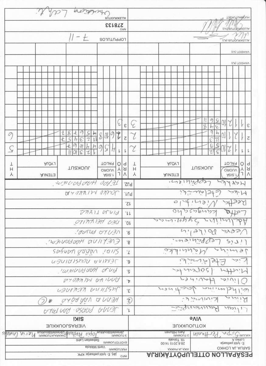 | Lohko A | 30.6.2015 09:00 | 19. Toivala | SiKi | Tahko | ViVe |