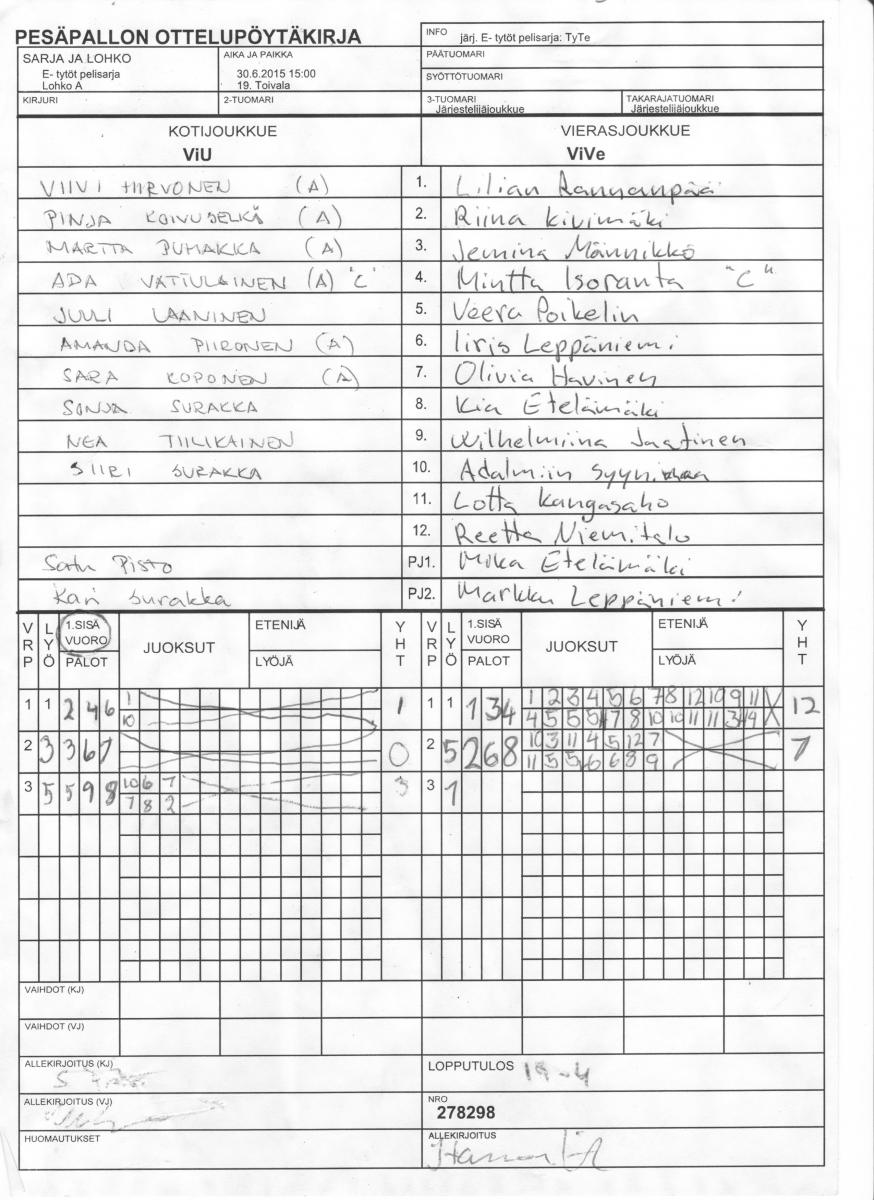 | 30.6.2015 15:00 | 19. Toivala | ViU | ViVe | 4-19 | näytä |
