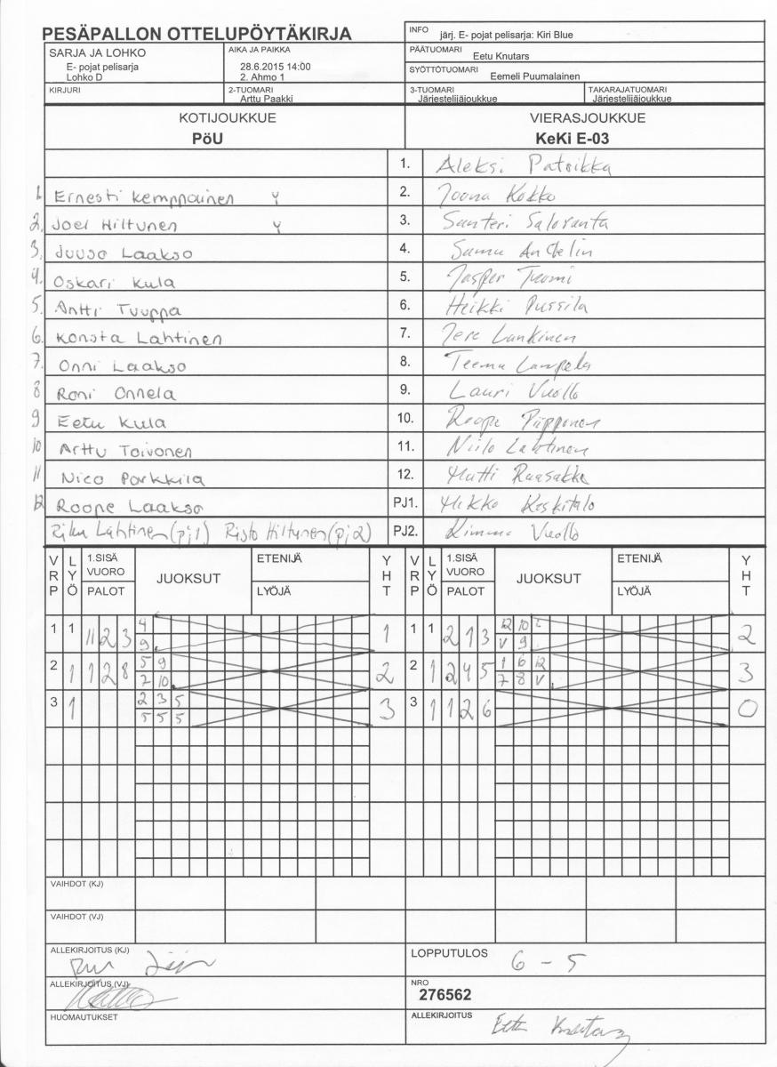 | 28.6.2015 14:00 | 2. Ahmo 1 | PöU | KeKi E-03 | 6-5 | näytä |