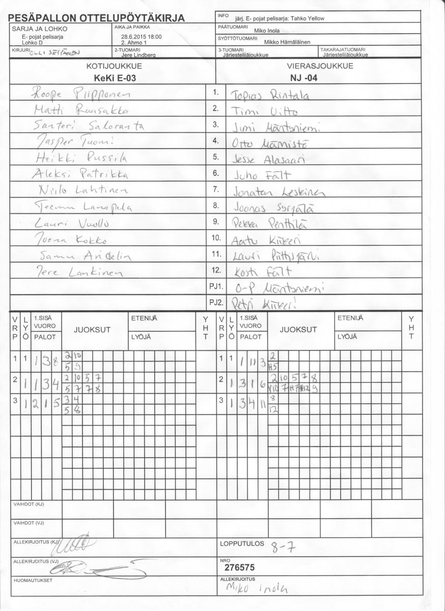 | Lohko T | 1.7.2015 14:00 | 2. Ahmo 1 | LP Loimaa | SoJy 2 | KeKi E-03 |