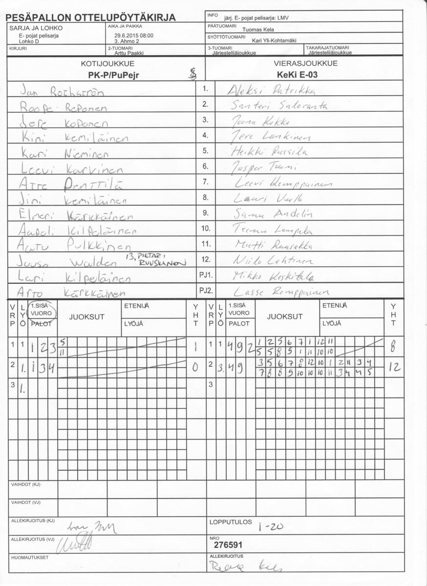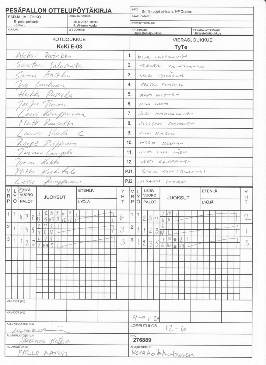 | Lohko J | 29.6.2015 18:00 | 5. Kuuslahti | TyTe | PattU -04 | KeKi E-03 |