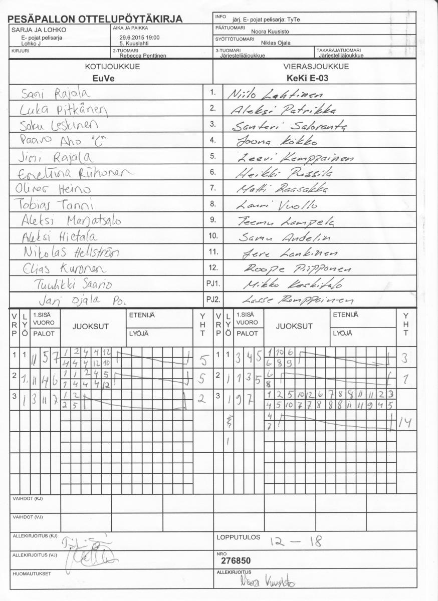 | 29.6.2015 19:00 | 5. Kuuslahti | EuVe | KeKi E-03 | 12-18 | näytä |