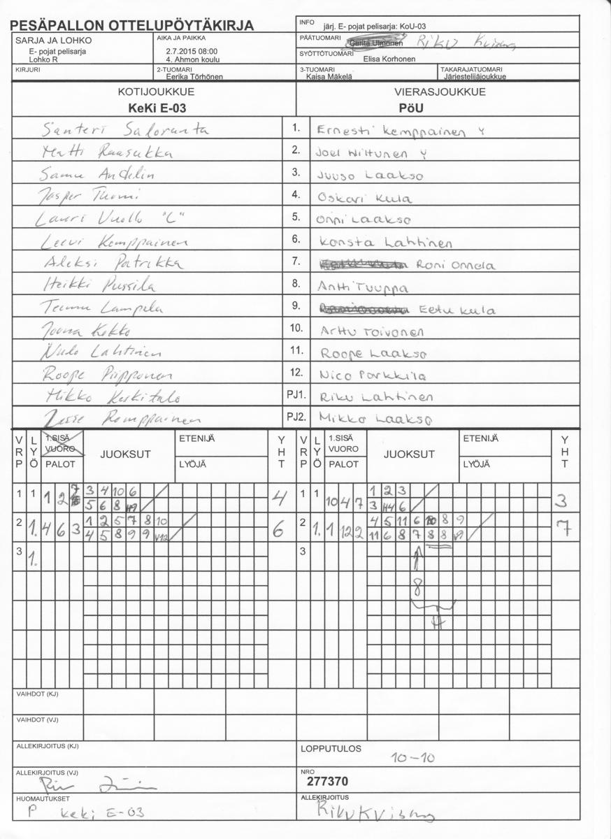 | Lohko R | 2.7.2015 09:00 | 4. Ahmon koulu | KPL -03 | KoU-03 | KeKi E-03 |