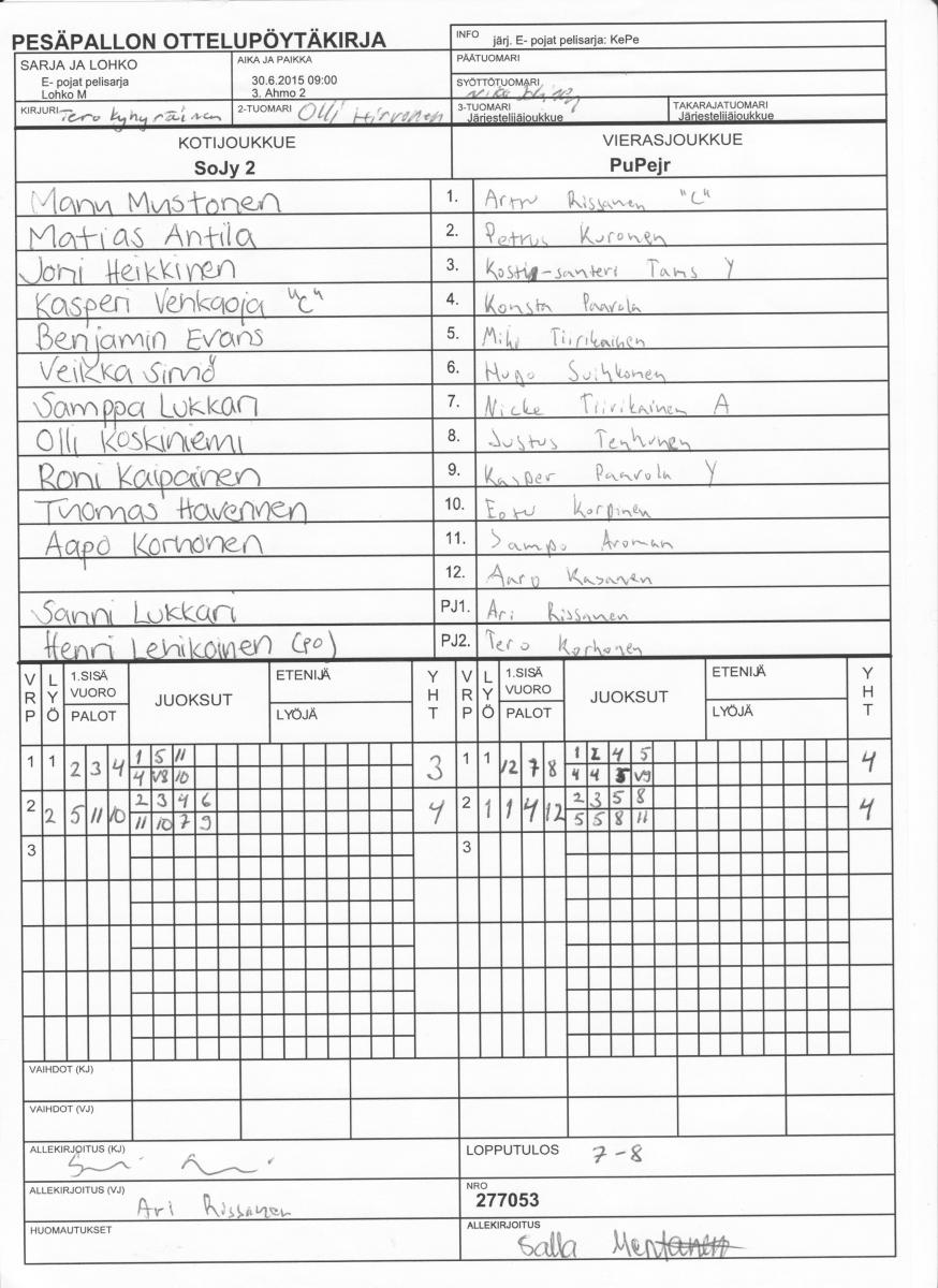 | Lohko S | 1.7.2015 11:00 | 2. Ahmo 1 | JoMa | EuVe | PuPejr |