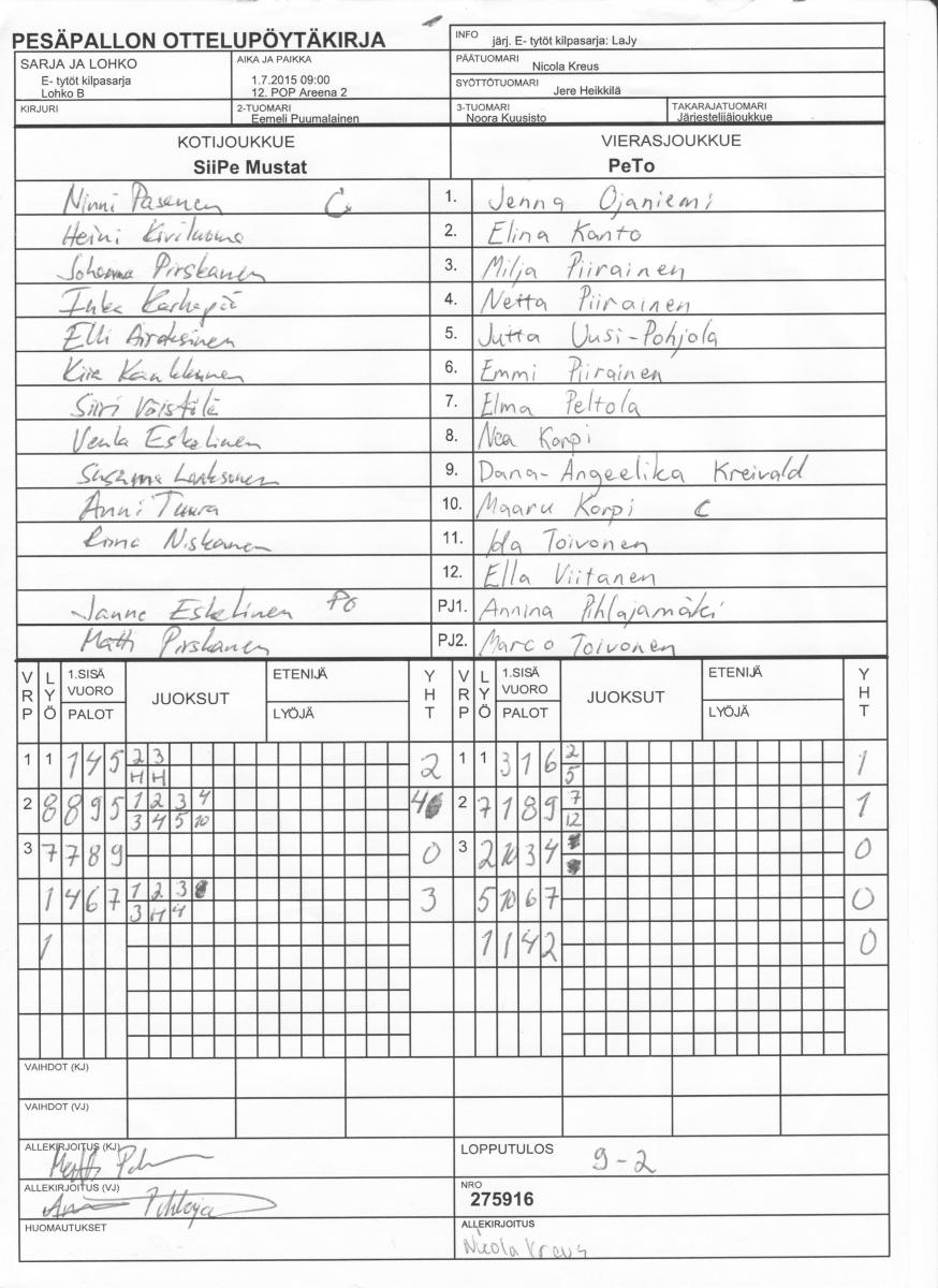 | Lohko A | 1.7.2015 08:00 | 12. POP Areena 2 | VM | LaJy | SiiPe Mustat |