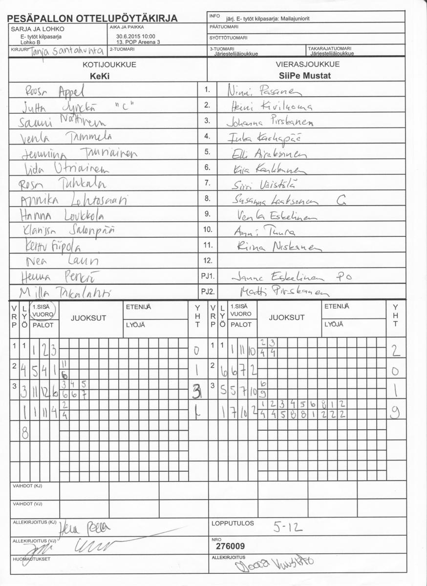 | 30.6.2015 10:00 | 13. POP Areena 3 | KeKi | SiiPe Mustat | 5-12 | näytä |