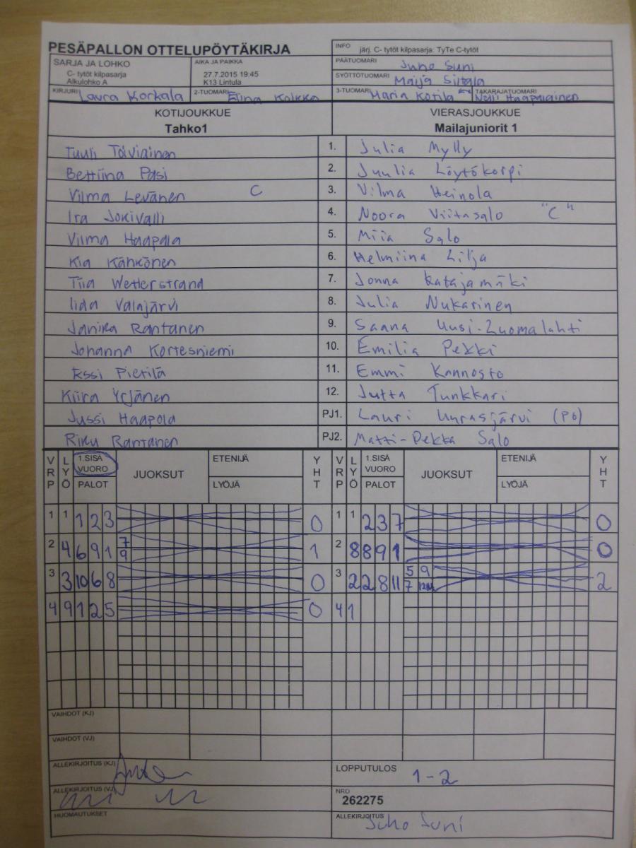 | C- tytöt kilpasarja - Alkulohko A | 28.7.2015 09:45 | K14 Pitkäkangas tekonurmi, Oulunsalo | Espoo 1 | Tahko1 | Mailajuniorit 1 |
