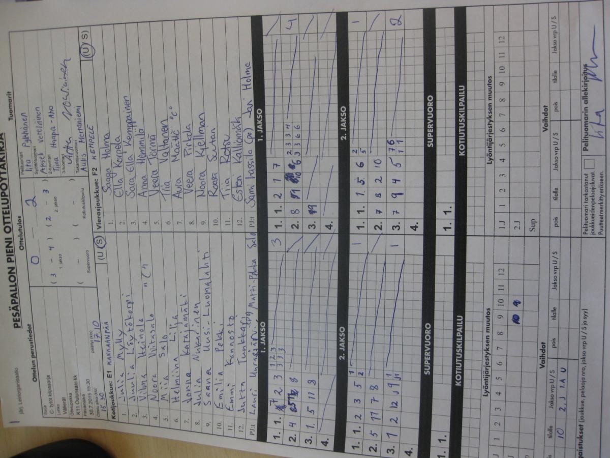 | Jatkolohko E (1-8) | 29.7.2015 14:15 | K12 Kaakkuri tekonurmi | Kirittäret | Lipottaret99 | Mailajuniorit 1 |