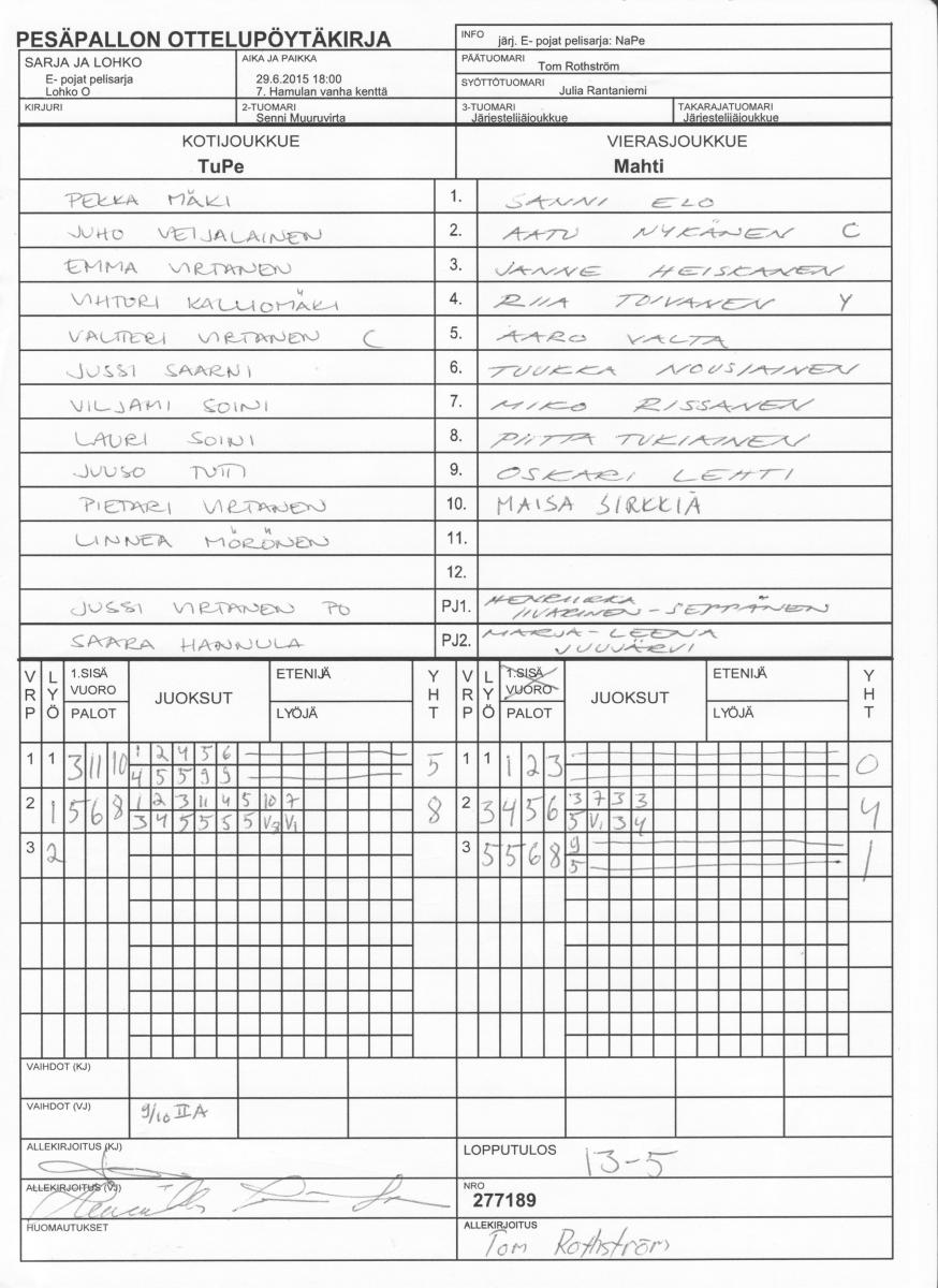 | Lohko N | 30.6.2015 20:00 | 1. Manttu | UP-V | PK-P/PuPejr | TuPe |