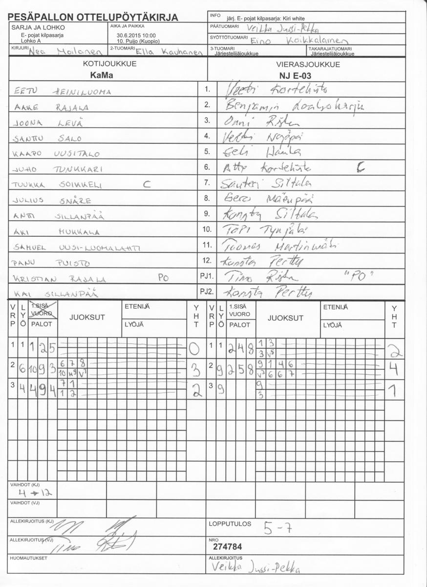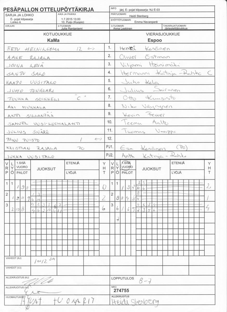 | E- pojat kilpasarja - Lohko A | 1.7.2015 14:00 | 10. Puijo (Kuopio) | YK | NJ E-03 | KaMa |