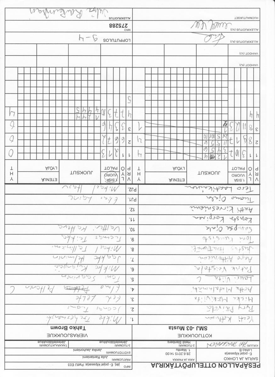 | 29.6.2015 15:00 | 1. Manttu | HP Musta | SMJ -03 Musta | 7-12 | näytä |