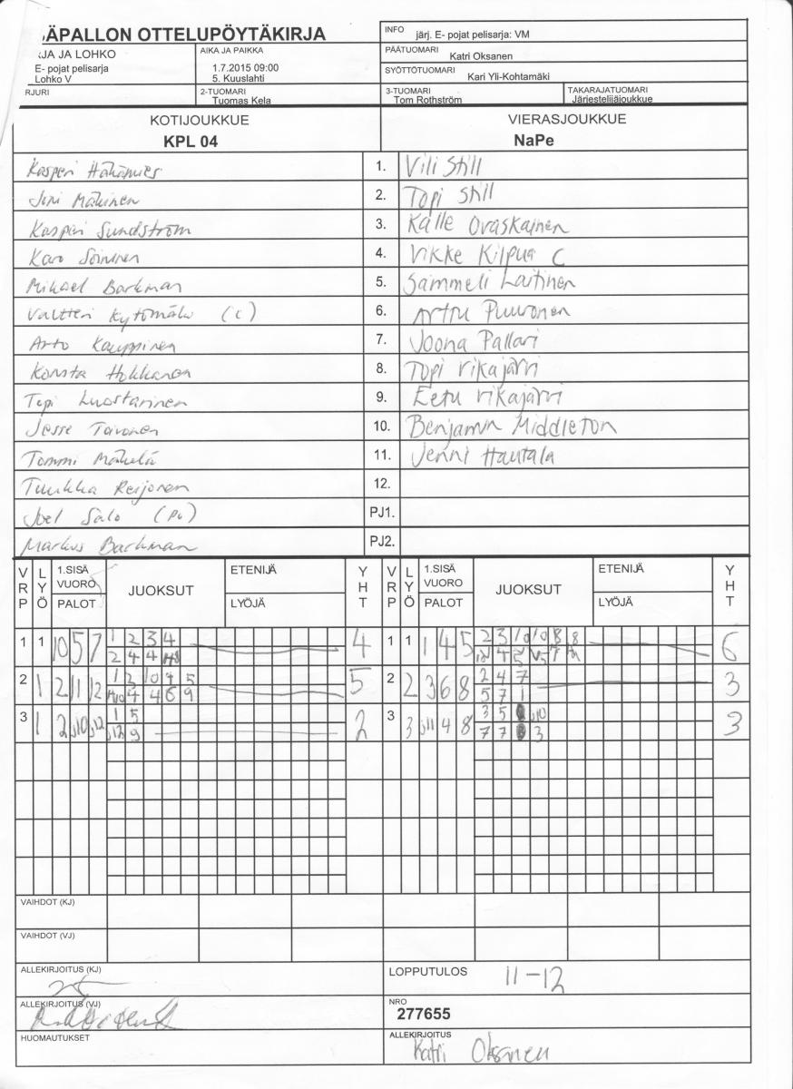 | Lohko Z | 1.7.2015 10:00 | 5. Kuuslahti | VM | KeKi -04 | NaPe |