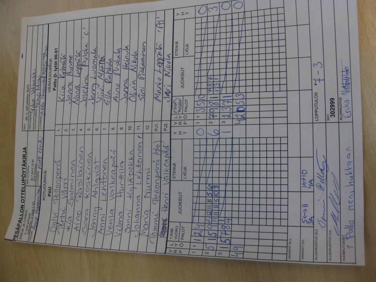 | Jatkolohko G (sijat 1-12) | 30.7.2015 11:00 | K19 Kaakkuri Hiekka | Pattu D- tytöt 00-01 | MuPS | PöU |