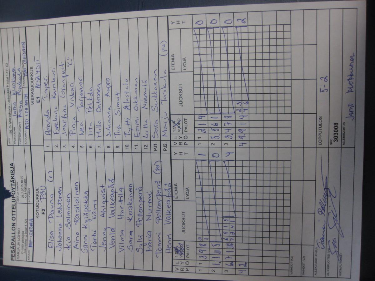 | Jatkolohko H (sijat 1-12) | 28.7.2015 19:45 | K18 Välivainio | Mailajuniorit 2 | PeTo | PöU |