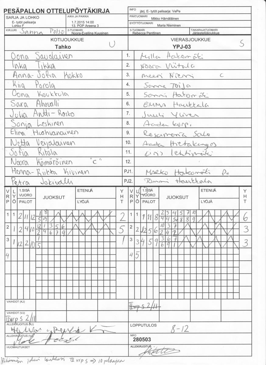 | Lohko F | 1.7.2015 08:00 | 17. Hamula | YPJ-03 | Puhti | Tahko |