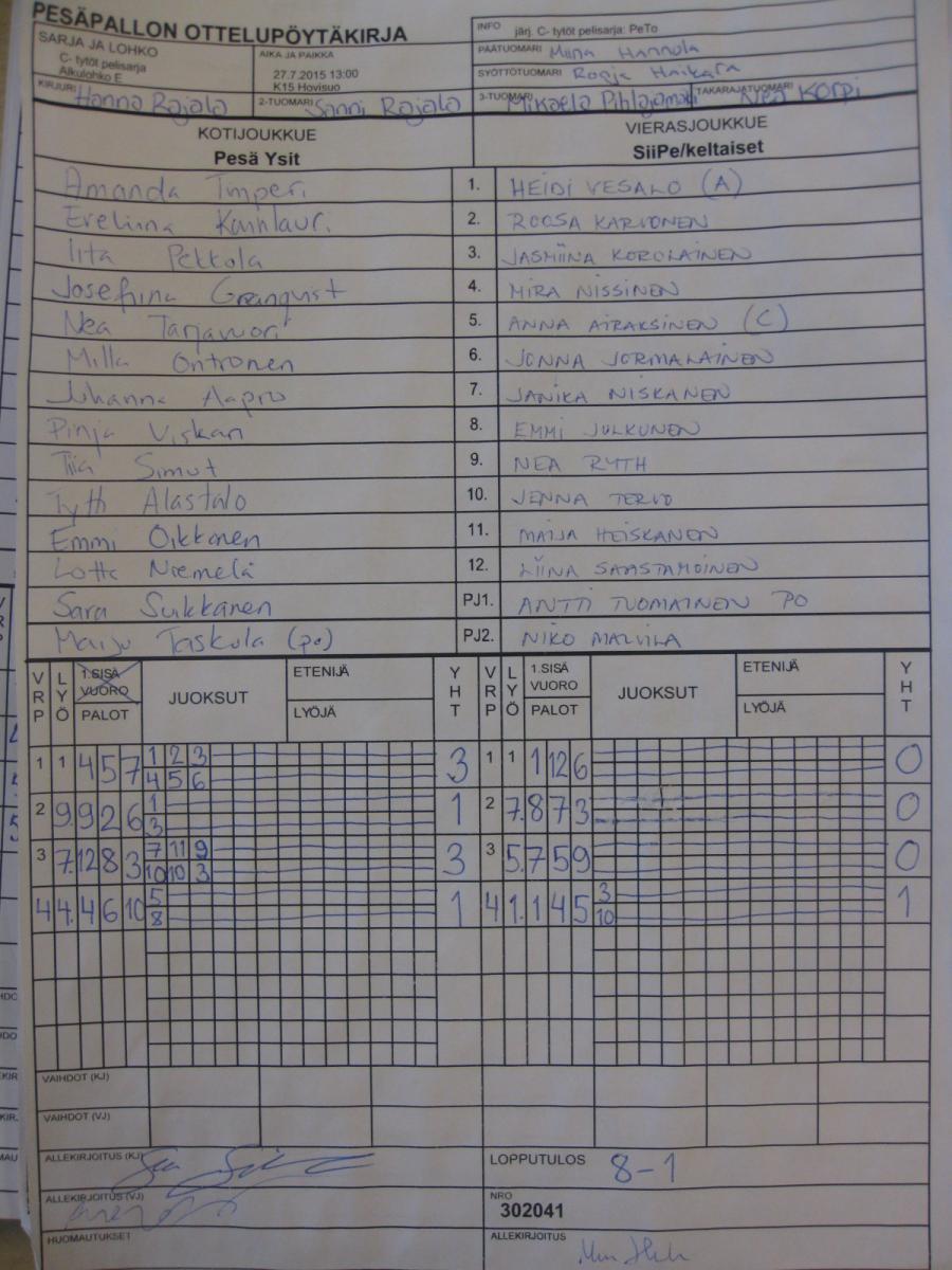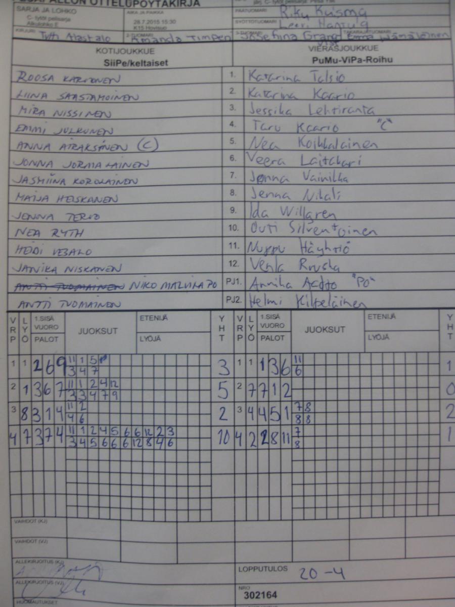 | 28.7.2015 15:30 | K15 Hovisuo | SiiPe/keltaiset | PuMu-ViPa-Roihu | 20-4 | näytä |