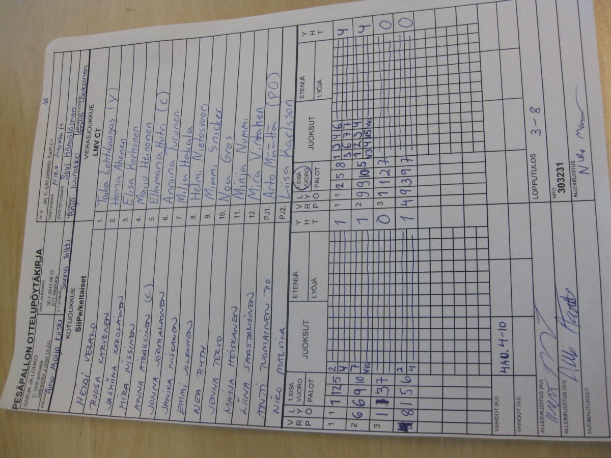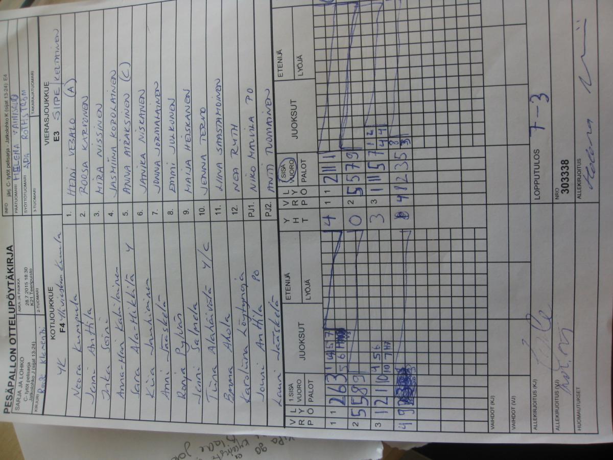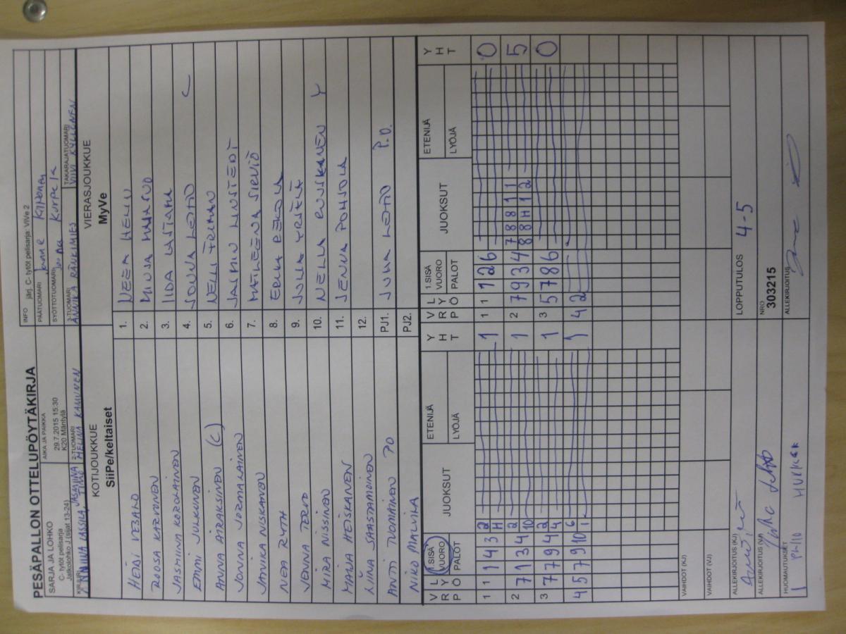 | Jatkolohko J (sijat 13-24) | 29.7.2015 14:15 | K20 Mäntylä | ViVe 2 | YK | SiiPe/keltaiset |