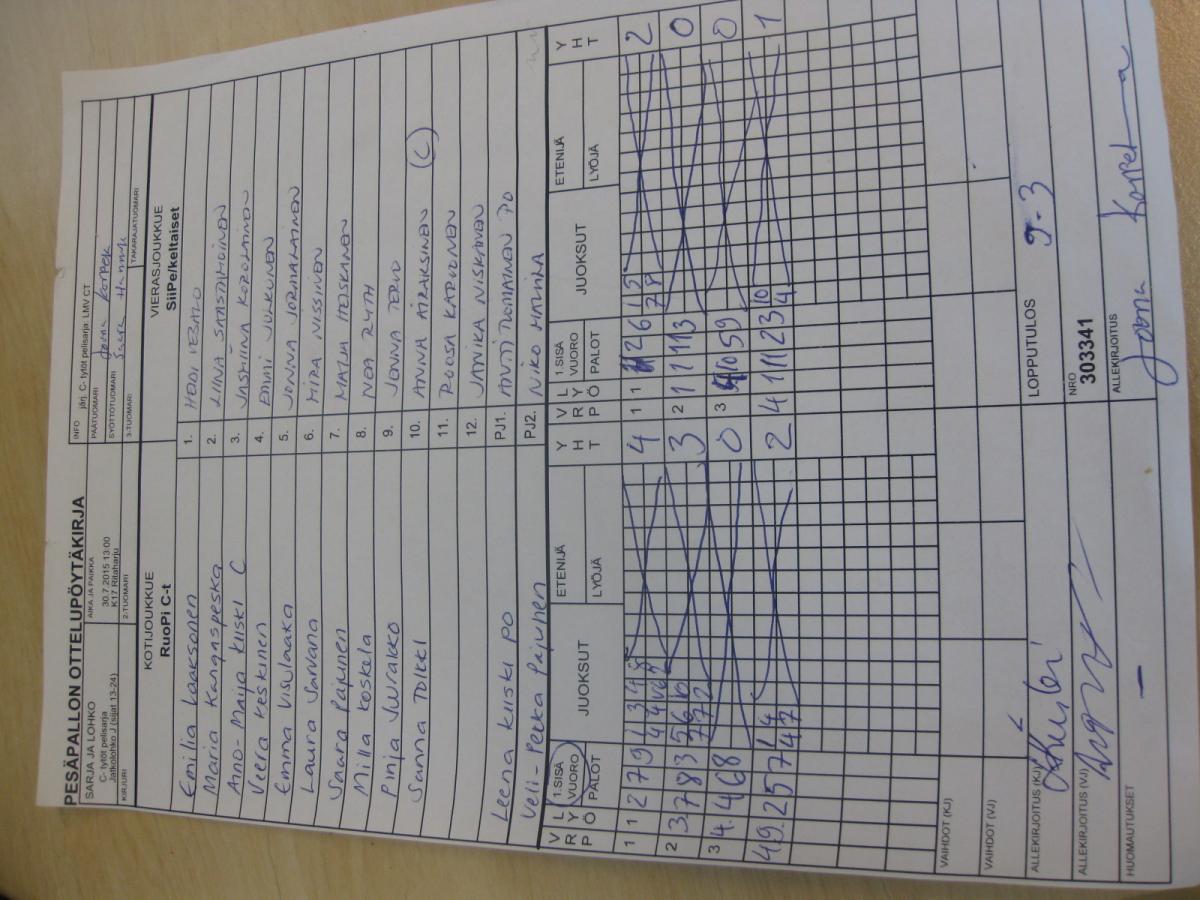 | Jatkolohko J (sijat 13-24) | 30.7.2015 09:45 | K17 Ritaharju | RuoPi C-t | YK | SiiPe/keltaiset |