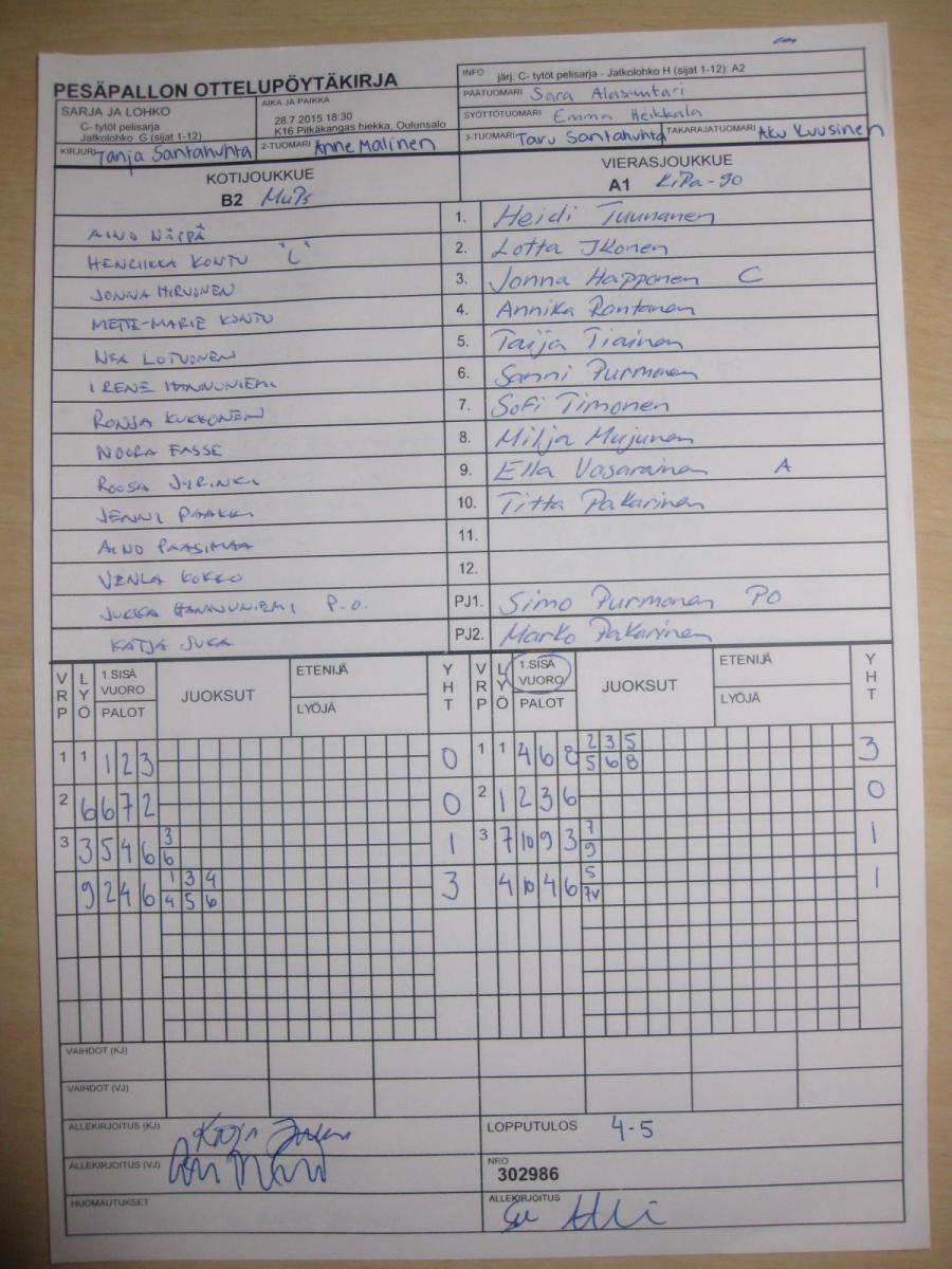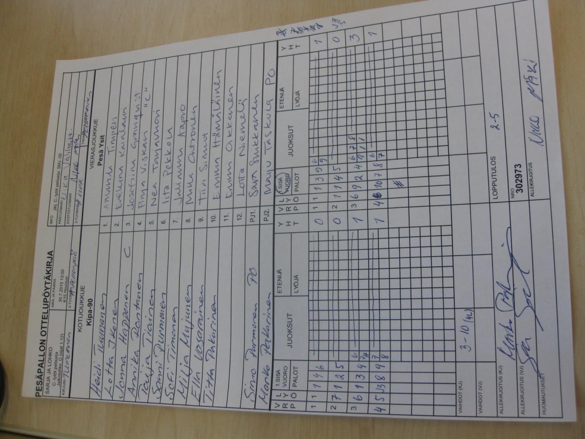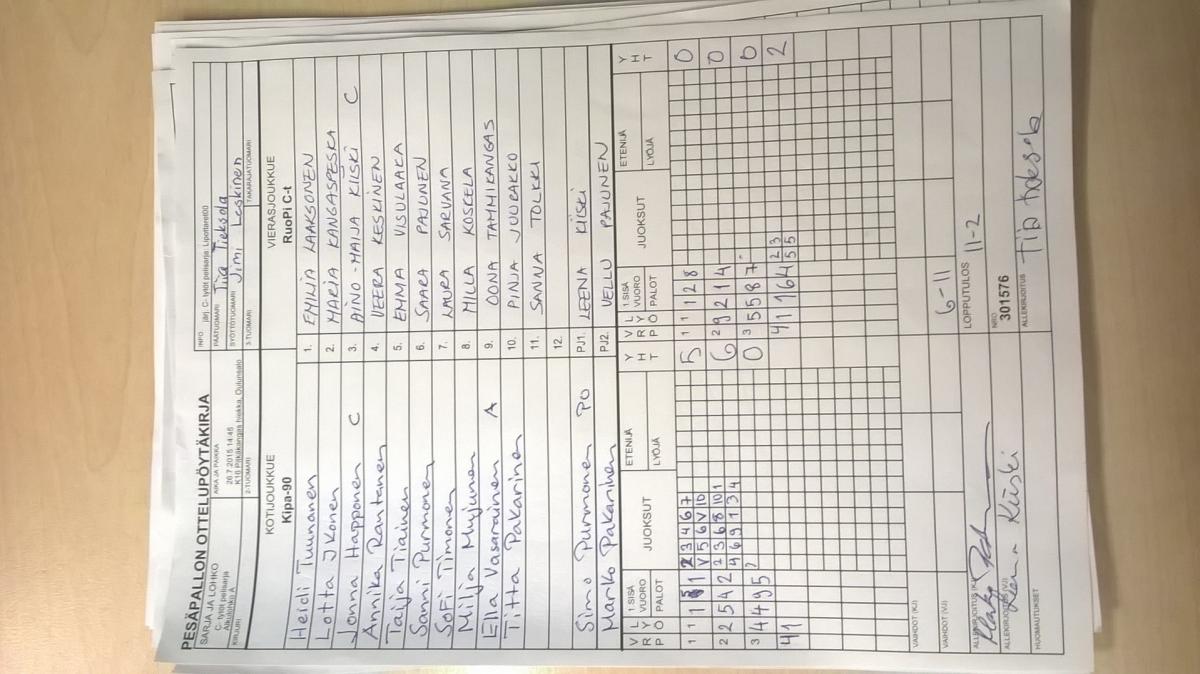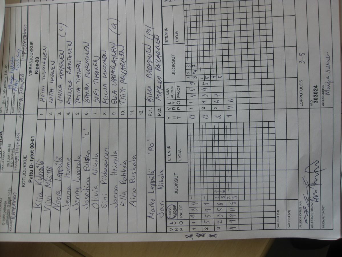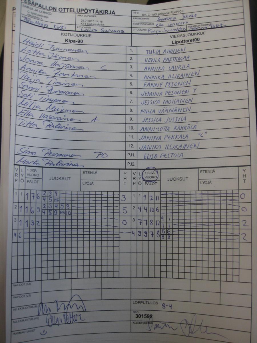 | C- tytöt pelisarja - Alkulohko A | 26.7.2015 13:30 | K16 Pitkäkangas hiekka, Oulunsalo | Lipottaret00 | OuHu | Kipa-90 |