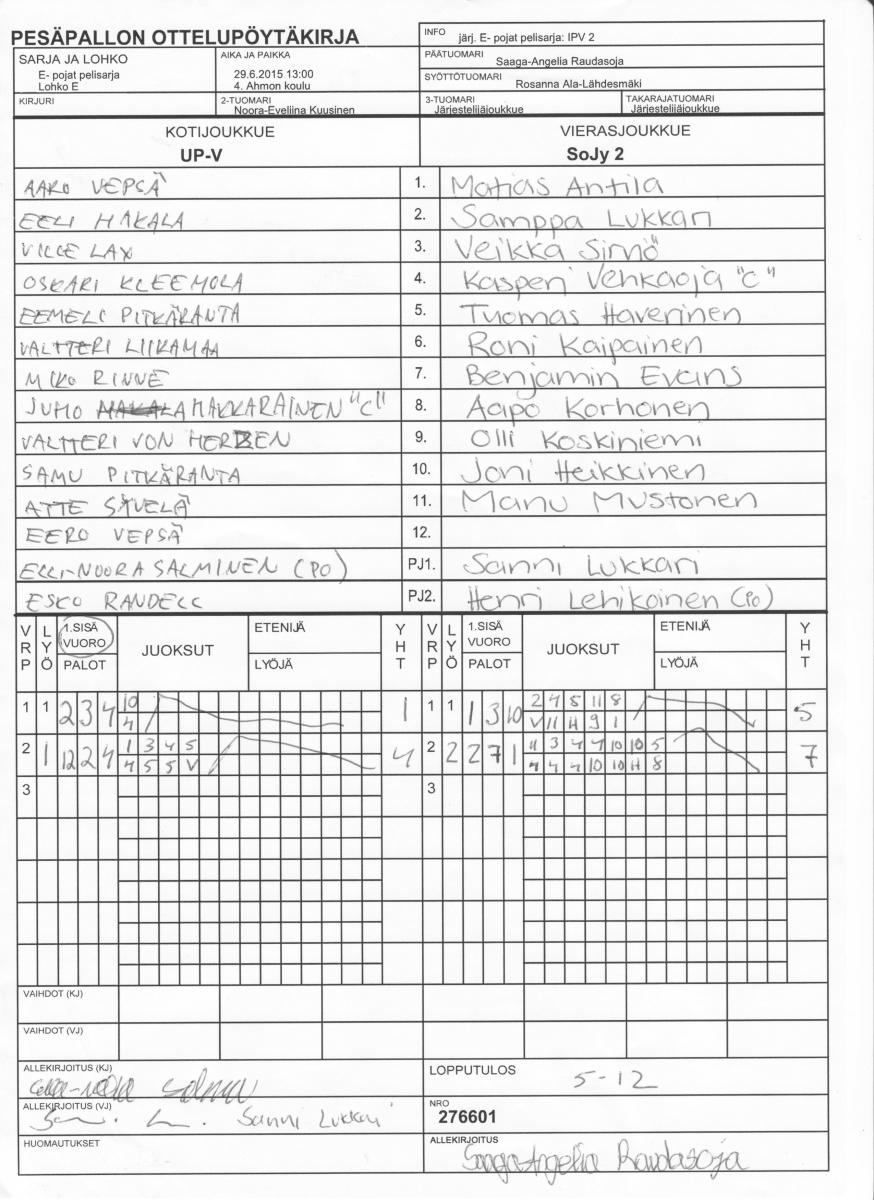 | 29.6.2015 13:00 | 4. Ahmon koulu | UP-V | SoJy 2 | 5-12 | näytä |