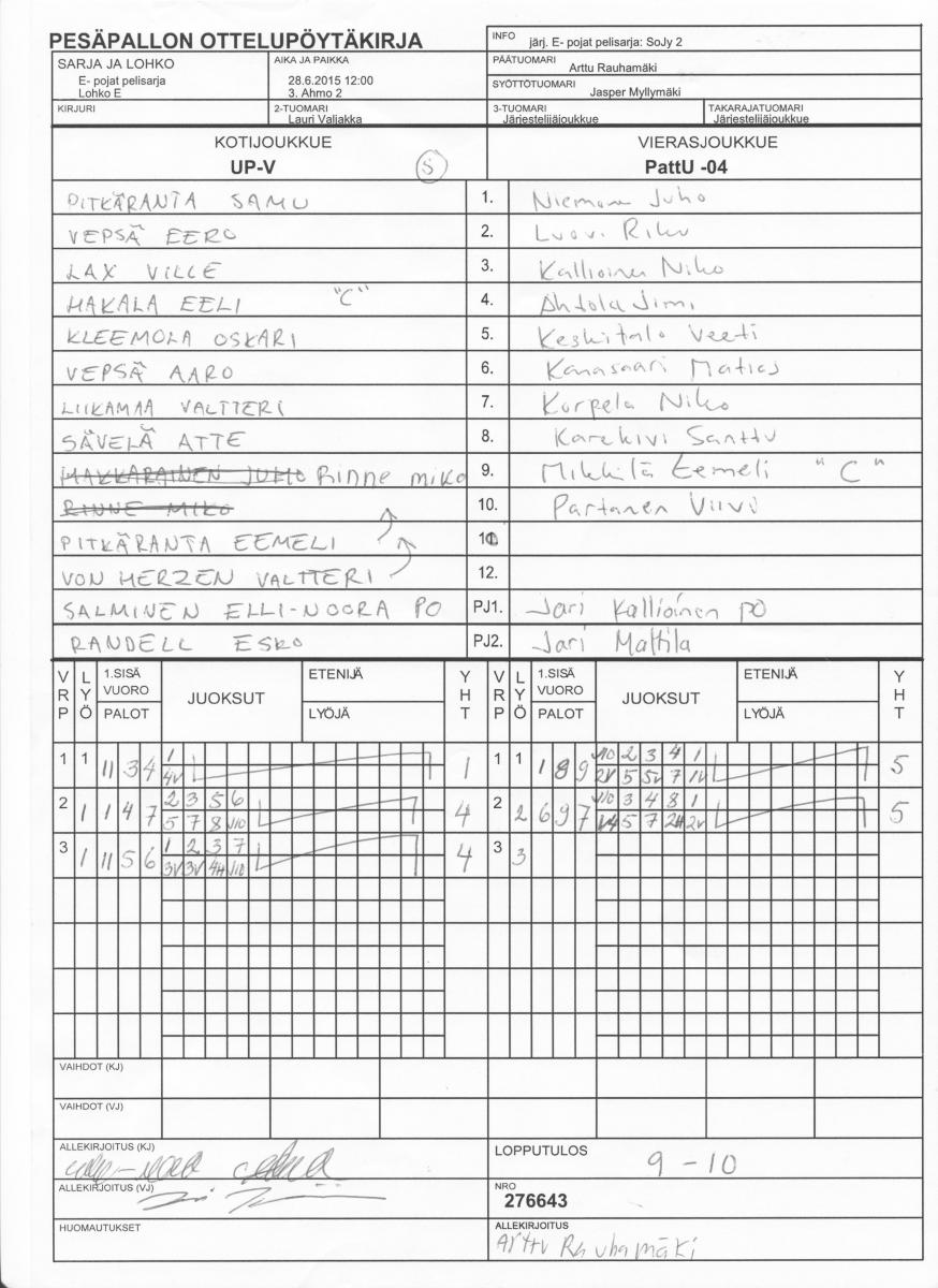 | E- pojat pelisarja - Lohko E | 29.6.2015 14:00 | 4. Ahmon koulu | IPV 2 | PattU -04 | UP-V |